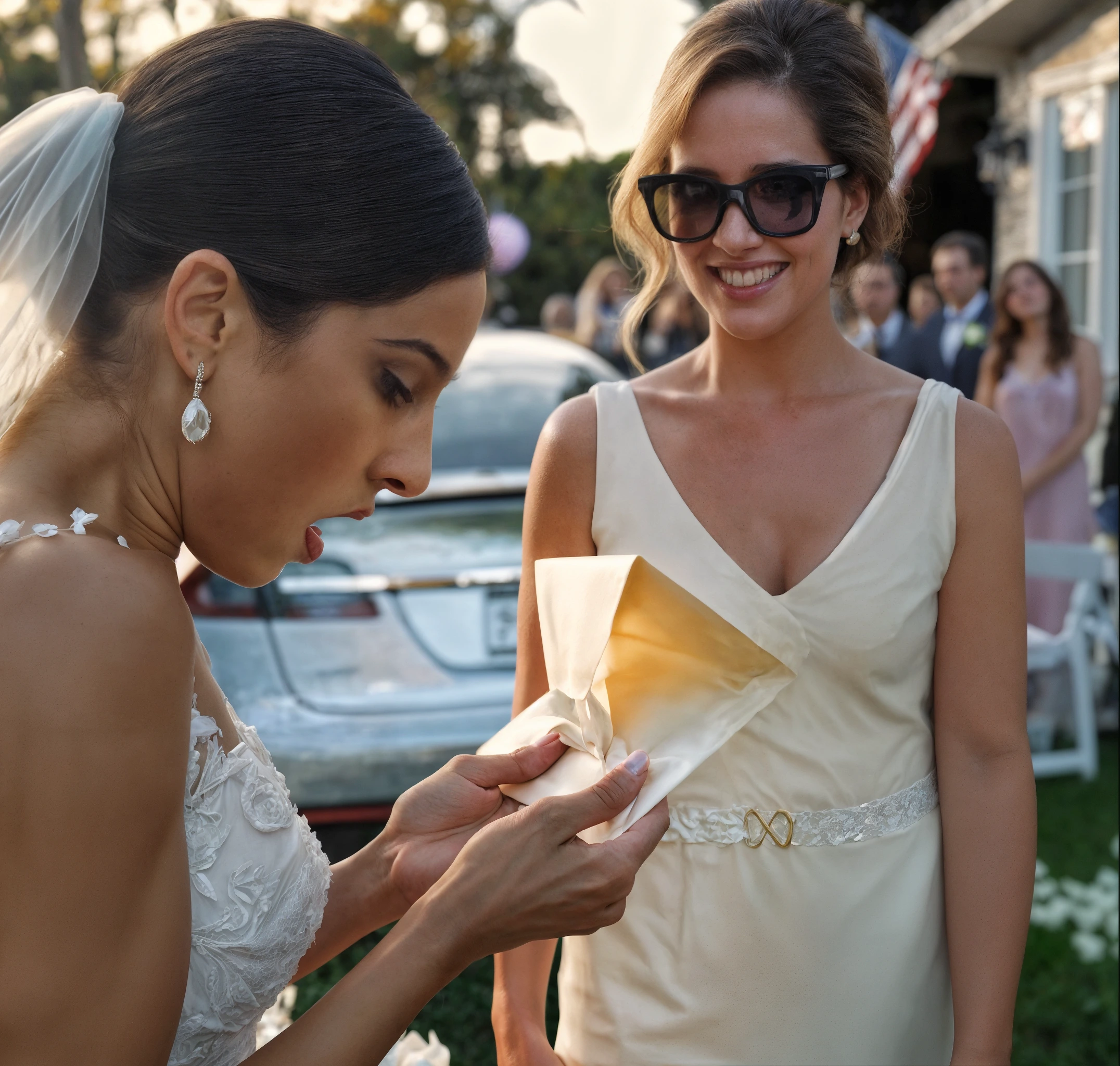 Ore dopo la festa era finita. La casa odorava di fiori e sfinimento. Amy, ancora in abito da sposa, era sola, l’estratto conto sulle ginocchia. Fuori, gli irrigatori sussurravano sul prato vuoto. Il telefono vibrò. Un messaggio. Numero sconosciuto.