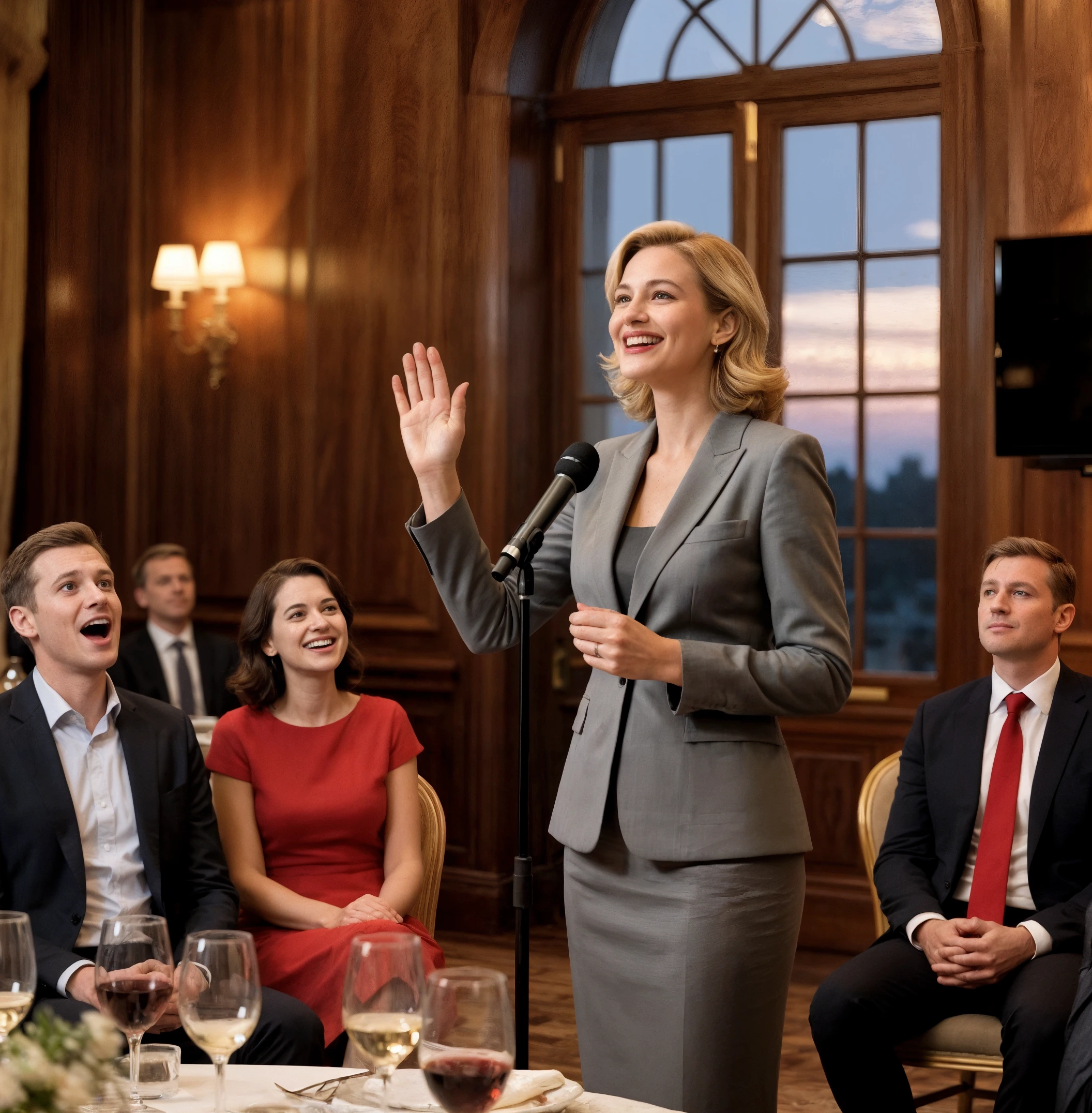 Alëna si alzò e salì sul palco. Sorrise alla sala e passò accanto al marito come se non lo vedesse. Maksim sedeva con un’espressione completamente sconvolta.