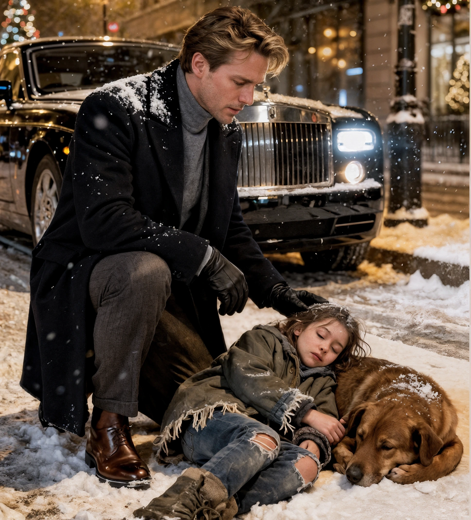 Contro il suo miglior giudizio, Benjamin abbassò il finestrino. Sotto un lampione tremolante, una piccola figura era seduta rannicchiata contro il muro, una coperta sottile avvolta sulle spalle. Accanto a lei, un cane nero spelacchiato tremava nella neve.