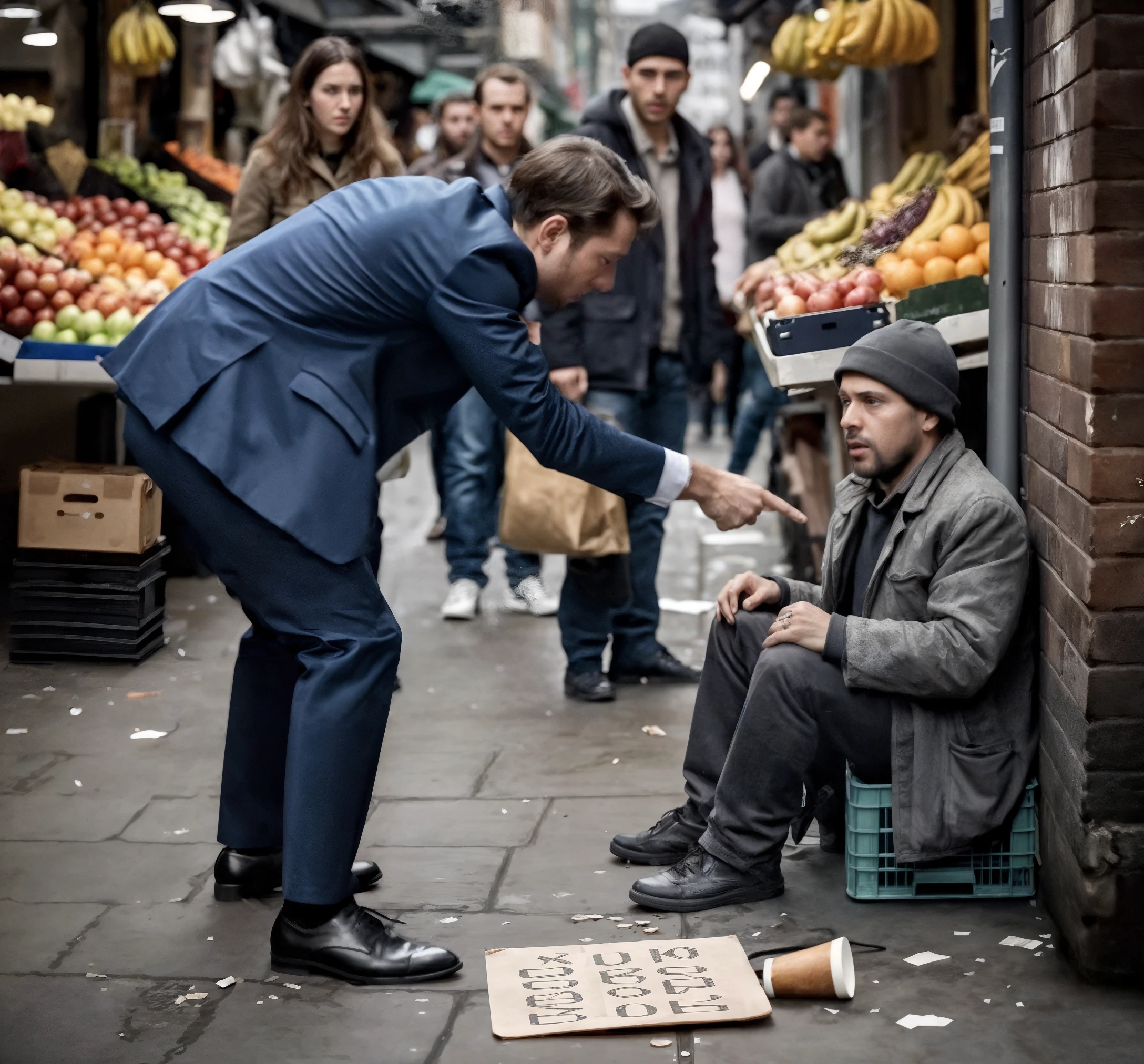 Vicino al banco d’angolo, seduta, c’era una donna fragile, avvolta in un cappotto logoro. Teneva in mano un cartello di cartone: «Ho fame. Per favore, aiutatemi». Le mani le tremavano mentre porgeva un bicchiere di carta ai passanti. La maggior parte la ignorava. Adrian serrò la mandibola con irritazione avvicinandosi. Odiava i mendicanti: gli ricordavano una debolezza che, a suo dire, il mondo non poteva giustificare.