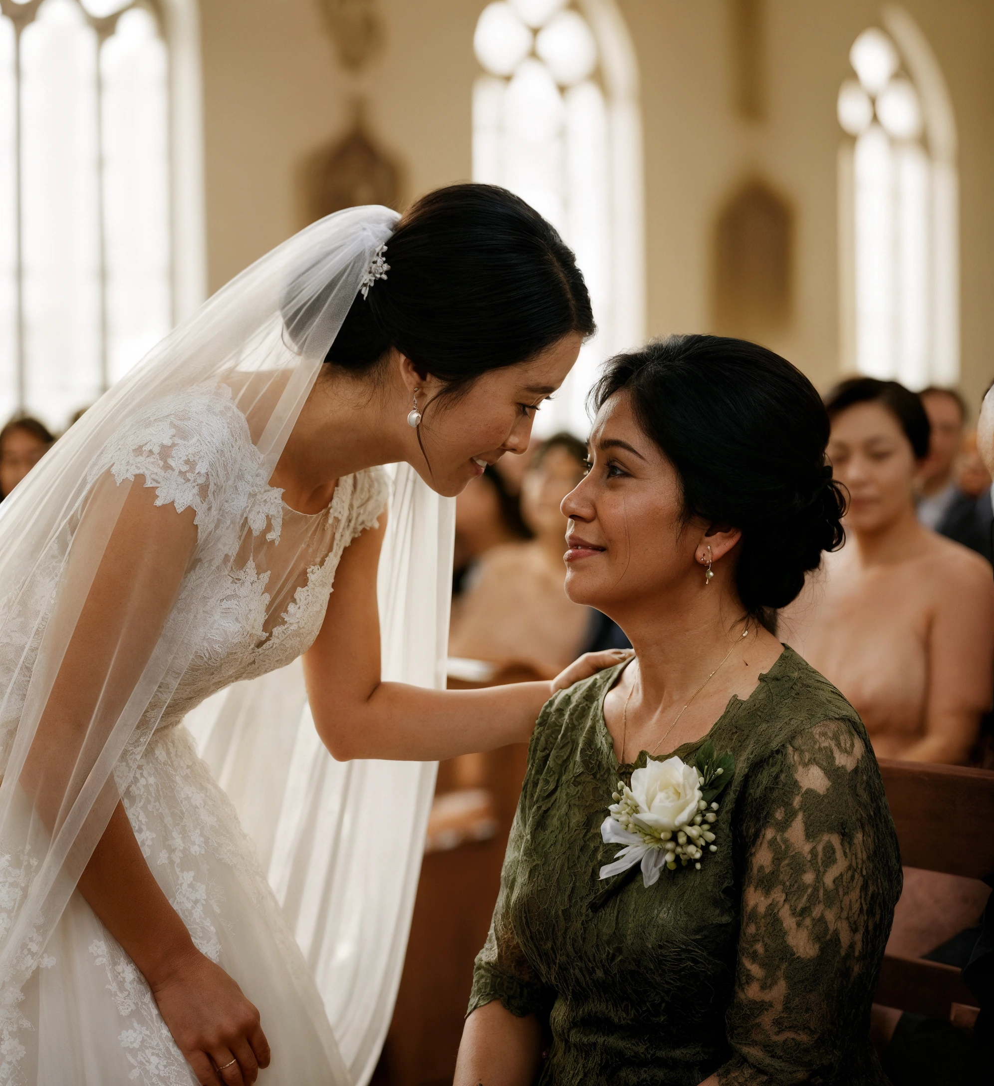 Ora, con il matrimonio alle porte, esitavo a metterlo ancora. Era vecchio, un po’ logoro, ma era tutto ciò che avevo. Provai a farmi prestare qualcosa di nuovo, ma mi sembrava innaturale. Tutto ciò che potevo fare era restare fedele a me stessa — essere la madre che ero sempre stata.