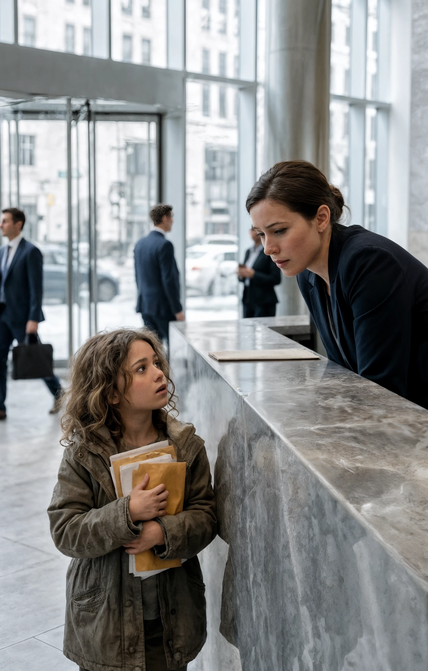 La voce tremante di una bambina di sept ans brisa le silence élégant du hall en verre d’une grande entreprise de technologie. Le sue piccole mani stringevano una busta stropicciata come se fosse un tesoro.