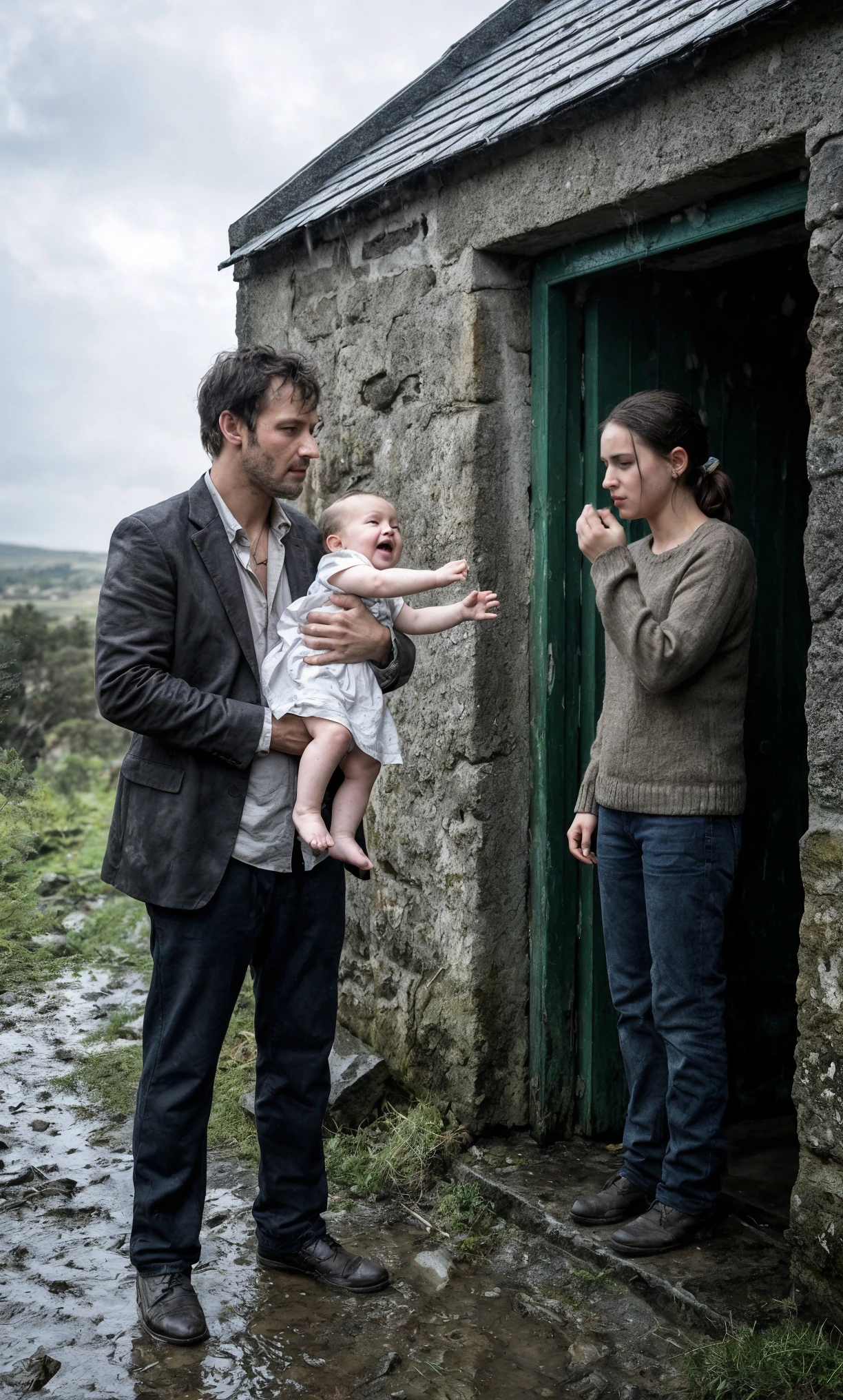 Le mani gli tremavano mentre provava a sussurrare: «Calmati, tesoro…» ma la voce si spezzò, come se stesse per piangere. Aurora urlò ancora più forte.