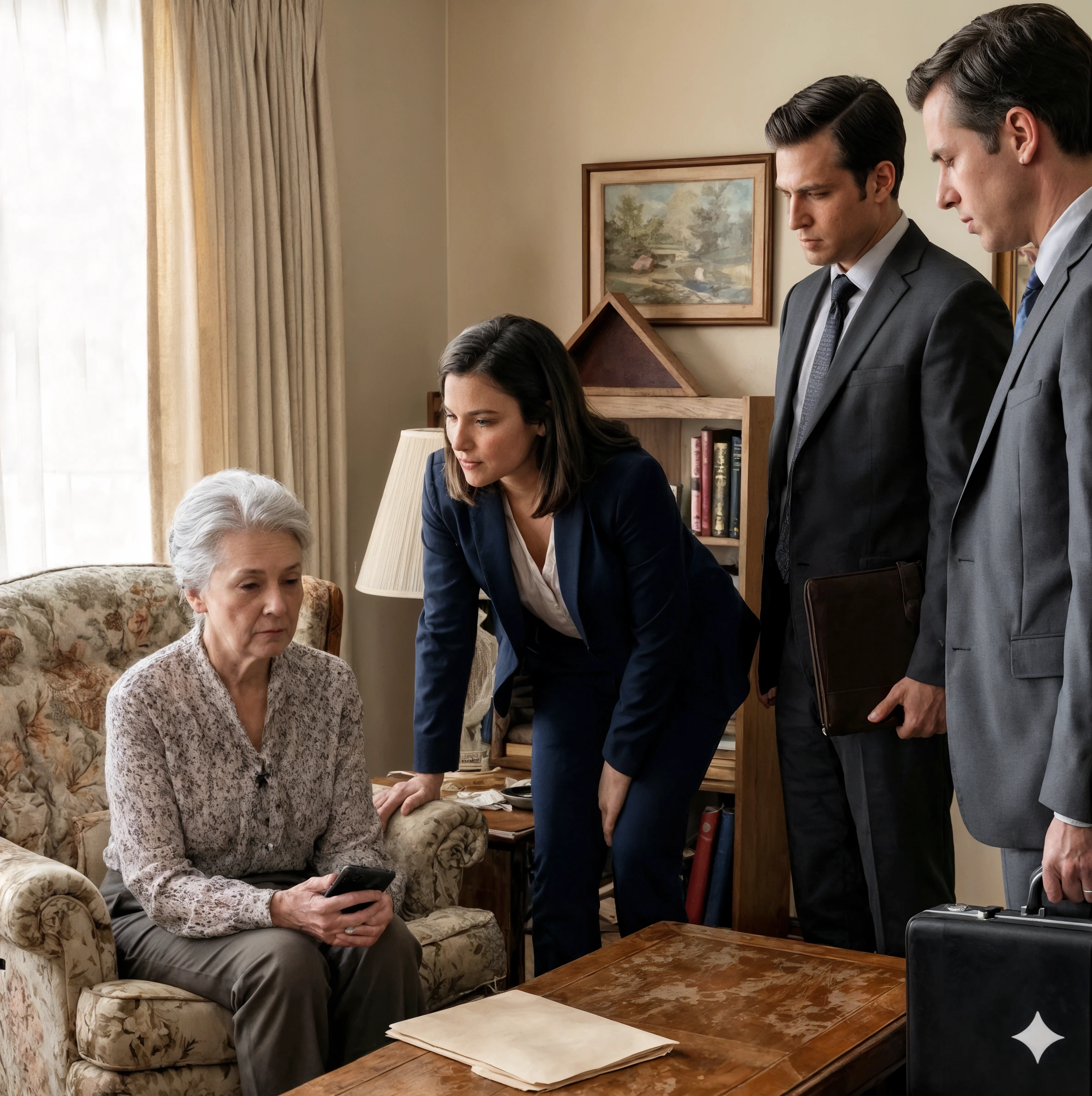 Amelia scese come se stesse andando a una riunione di consiglio. Con lei c’erano Albert Wright, un uomo la cui reputazione di litigante aggressivo in cause ereditarie lo precedeva, e un “consulente” finanziario. Jackson era vistosamente assente.