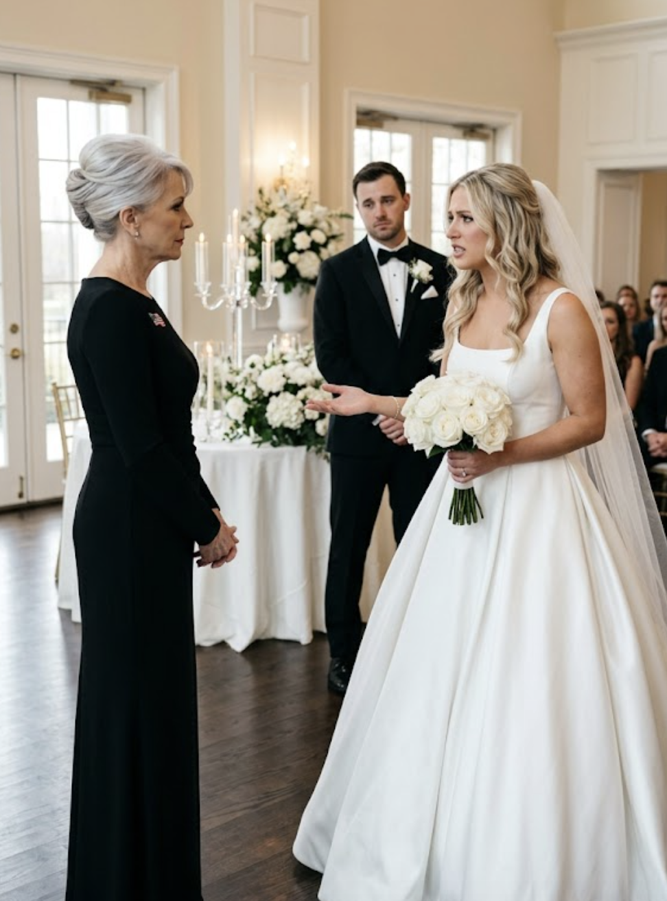 Un mormorio aspro serpeggiò tra gli invitati come vento che lacera foglie secche. Michael scese finalmente dall’altare, le mani alzate in segno di pacificazione.