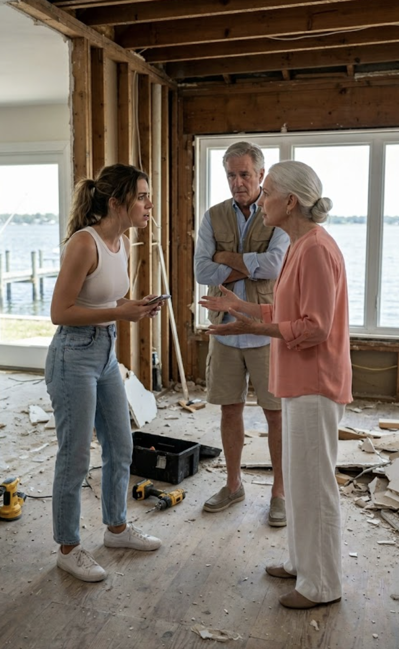 L’aria all’interno non era fresca. Era densa, gessosa e sapeva di gesso polverizzato. Bella rimase immobile mentre una nuvola di polvere bianca sottile si sollevava verso di lei. Il suo soggiorno, un tempo un ambiente curato con lino color crema e fotografie vintage del lago, era stato svuotato. I muri erano spariti, ridotti a montanti scheletrici e fili elettrici scoperti. I pavimenti in legno lucidati meticolosamente erano coperti da cumuli di detriti, cartongesso smantellato e pesanti attrezzature da cantiere.